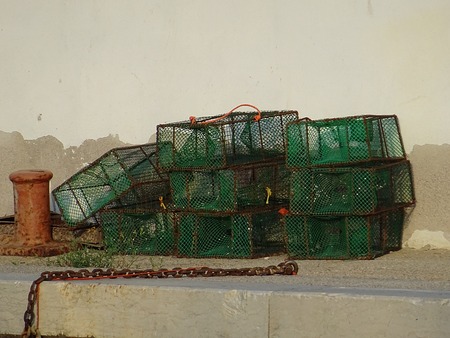 crab fishing basket on a fishing boat on a spring day in Portugal