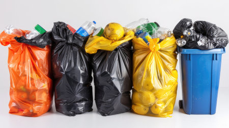 Full garbage bags on orange background