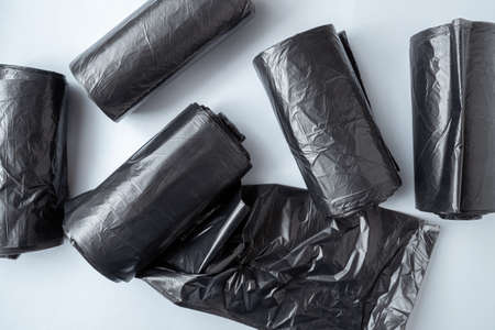 New black garbage bags on a white background.