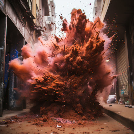 Powerful Explosion in Urban Alleyway with Bricks and Debris Flying