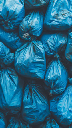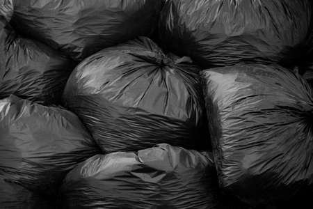 A pile of trash packed with biodegradable plastic bags on natural light background.