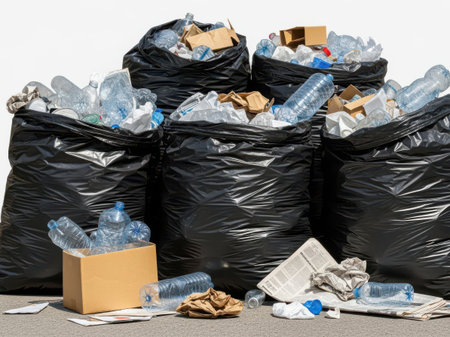 Overflowing Garbage Bags and Plastic Bottles Outdoors