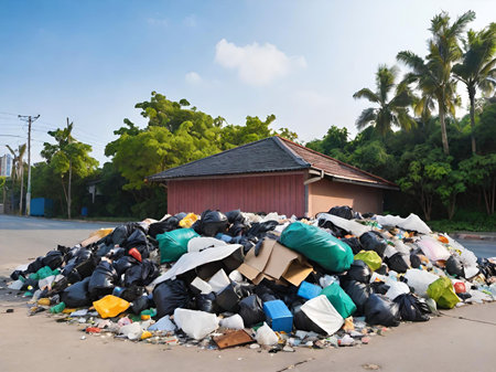garbage piles from overfilled trash bins close-up overflowing garbage, created with generative ai