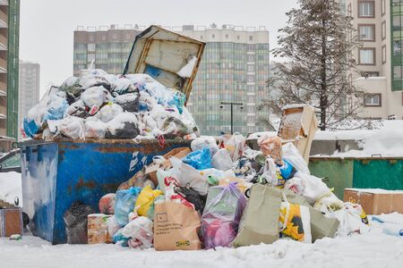 Russia. Saint-Petersburg. February 2019.a lot of garbage on the s