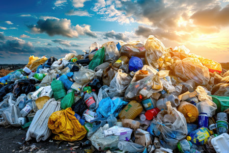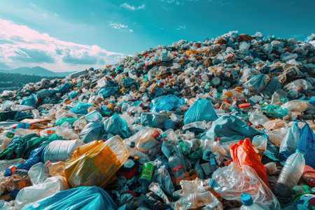 pile of plastic trash and overflowing garbage on landfill, created with generative ai