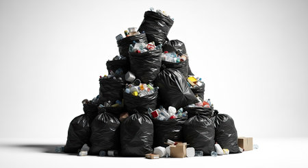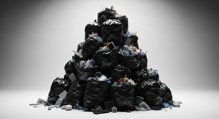 Mountain of Colorful Garbage Bags Highlighting Waste Management Issues