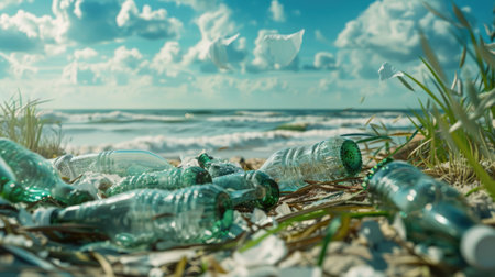 A troubling view of the ocean surface littered with plastic bottles, highlighting the urgent issue of marine pollution generative ai.