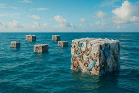 Ocean pollution concept: plastic waste and marine conservation awareness.