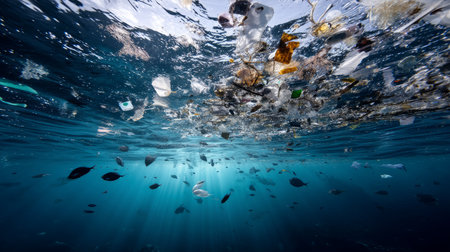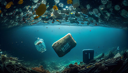 Ocean Pollution Awareness: impact of plastic and waste on marine environments. Generative AI