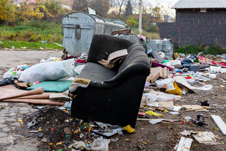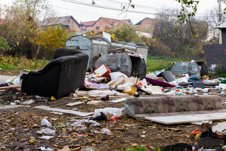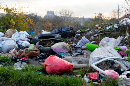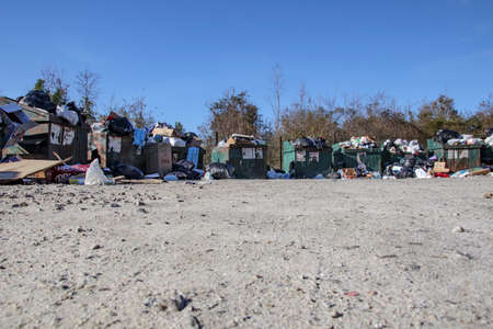 Belgrade, Serbia - November 17, 2022: Garbage and trash at Landfill scatered all over the place in Belgrade, Serbia