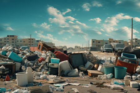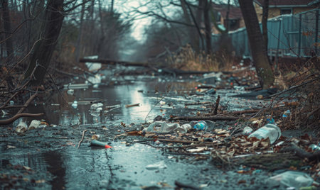 A stark image showing an abandoned street overrun with plastic waste and litter, highlighting the urgent need for cleanup and environmental awareness.