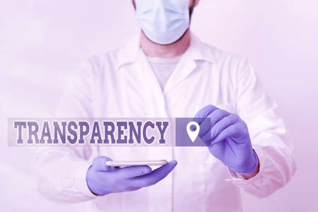 Handwriting text Transparency. Conceptual photo something transparent especially a picture viewed by light Laboratory Technician Featuring Empty Sticker Paper Accessories Smartphone