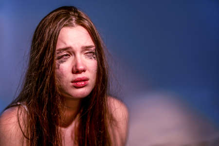 crying woman with black eye problems abuse