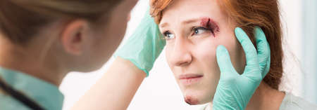 Young woman with cut eyebrow at the doctor