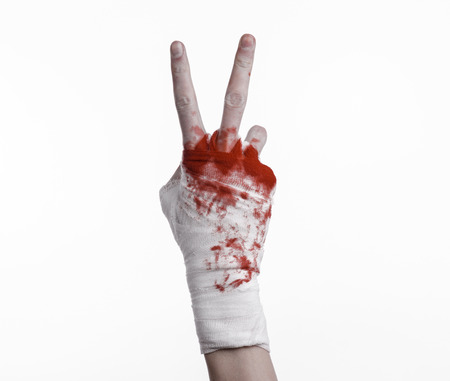 Real blood on finger of a man's hand which caused by knife