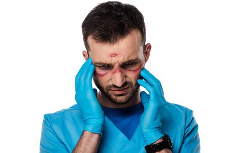 Young business man disappointed in life And fail in love. Young man who hurt himself