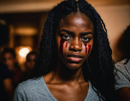 photo of rage angry black teenage college girl fighting the other with wound on face, generative AI