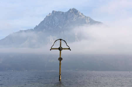 Memorial cross in the Traunsee, Upper Austria, Austria, Europe