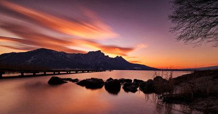 Sunset at Lake Lucerne, Switzerland. Long exposure.
