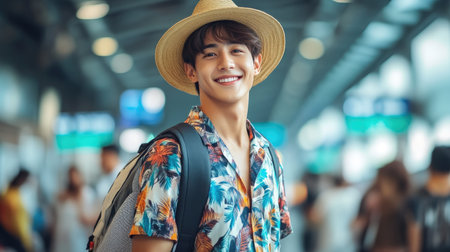 Airport Adventure: Handsome Man Smiling at Camera