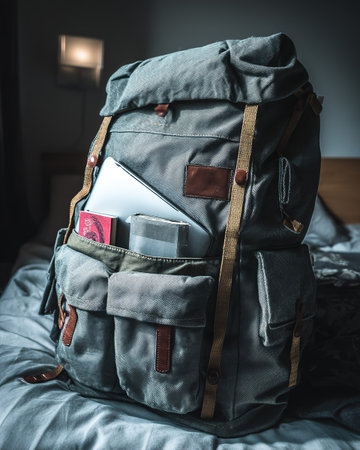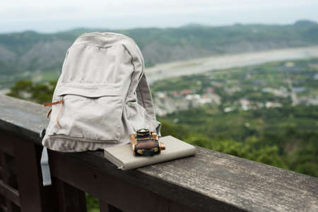Backpack's Journey: A Stylish Travel Bag Rests on the Edge of Adventure