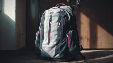 Adventure Awaits: A Gray and Red Backpack Ready for Exploration