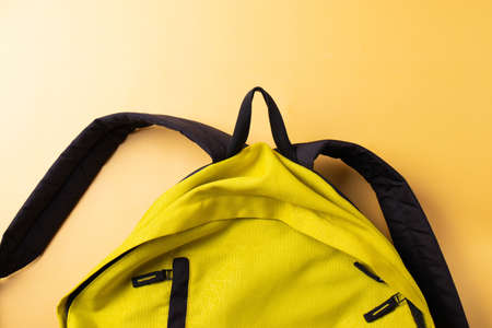School bag. Backpack with sticky notes for school on yellow background. generative ai