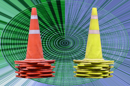 Traffic cones in driving school. Concept driving courses or driving licence training. Close up.