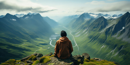 Solitude at the summit. Contemplating the wilderness vast. AI generation