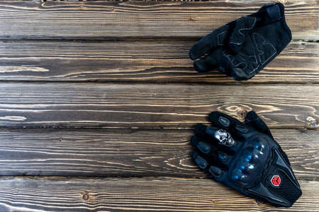 Happy Father's Day. Flat lay with Copy Space on Father's Day theme. wooden background. On the topic of car mechanic and motorcyclist, biker
