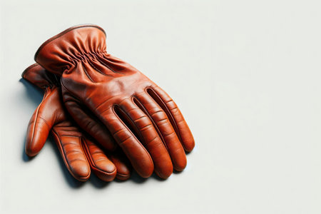Minimalist white background with a pair of leather gloves, neatly placed side by side