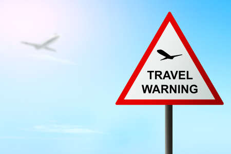 Caution sign of new variant of covid 19 omicron. Travel Warning concept