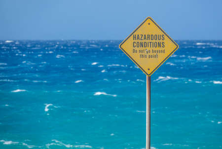 A Sign Beside The Ocean In Hawaii Warning Of Hazardous Conditions
