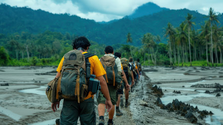 A group of friends embark on an epic adventure through breathtaking landscapes, exploring nature's wonders Their journey is filled with camaraderie, outdoor leisure, and the creation of unforgettable memories Join them as they discover hidden gems and embrace the thrill of exploration AI Generative