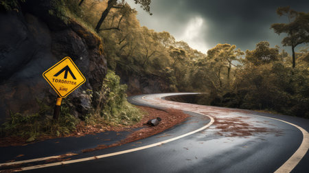 Warning sign near Waimea Canyon in the Hawaiian island of Kaua'i, Hawaii, USA, on Waimea Canyon is known as the Grand Canyon of the South Pacific. It is approximately ten miles (16 km) long and up to 3,000 feet (900 m) deep, located on the western side of Kaua'i. It was formed by the deep incision of the Waimea River arising from the extreme rainfall on the island.