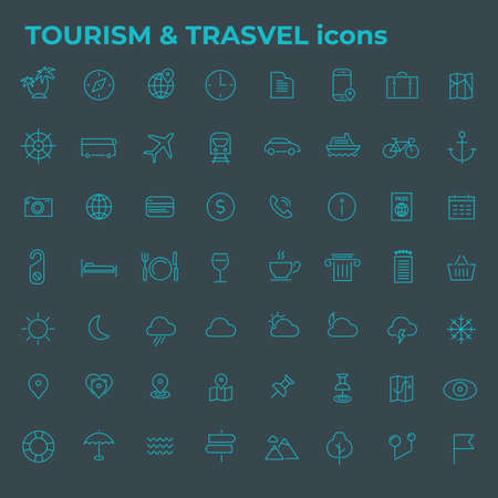 Travel and tourism icons set. Collection of travel and tourism symbols.