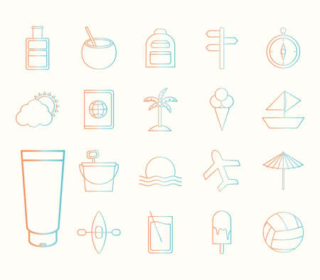 summer gradient style icons collection design, vacation and tropical theme Vector illustration