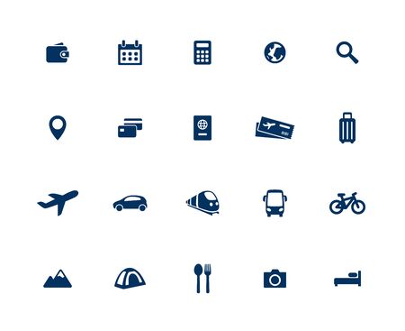 Travel vector icon set. Tour sign collection. Simple flat design for web mobile app UI. Modern shape elements isolated on white