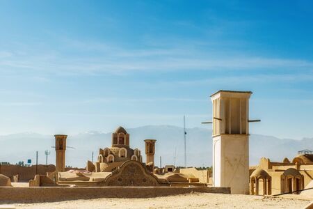 Kashan, Iran - April 26, 2017: the roof of Boroujerdi historial house and ventilation towers.