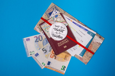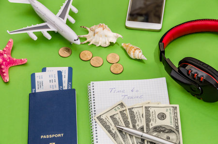 time to travel - airplane, tickets, passport and money