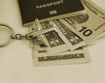 passport, dollars, plane, travel background