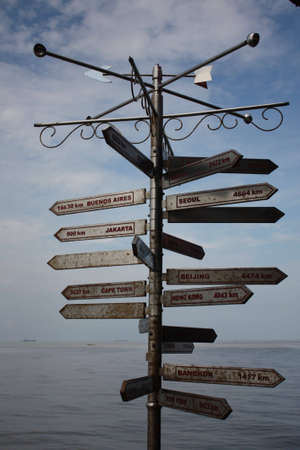 Pillar with direction to different capitals of the world. Distances from the Azores, Portugal