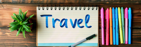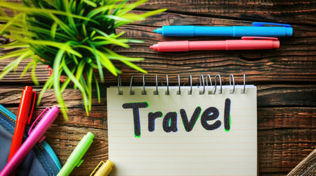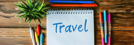 Journey Preparation with 'Travel' Inscribed on Notepad Among Writing Supplies