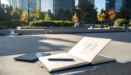 In the quiet morning light, an artist's sketchbook lies open, revealing a hand-drawn mountain range.
