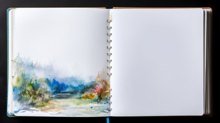 This image showcases a realistic sketchbook with an empty white background, ideal for artists looking for a serene, creative space to explore watercolor landscapes.