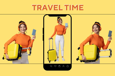 Design with phone, summer time design, travel time, vacation, design background for advertising