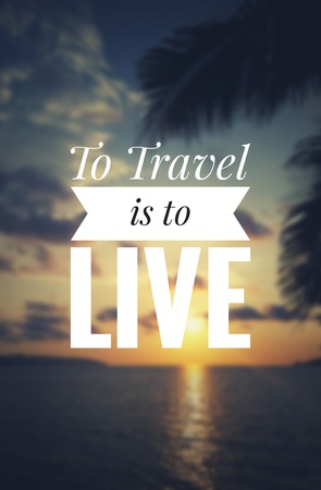 Inspirational quote - To travel is to live. Blurry sunset background.