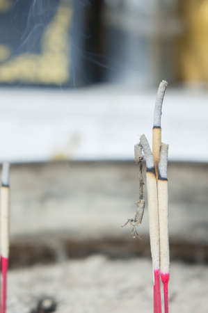 Incense sticks in the incense burner at the temple.