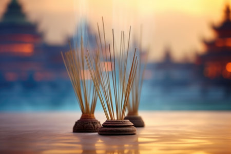 row of aromatic incense sticks against a tranquil backdrop, created with generative ai