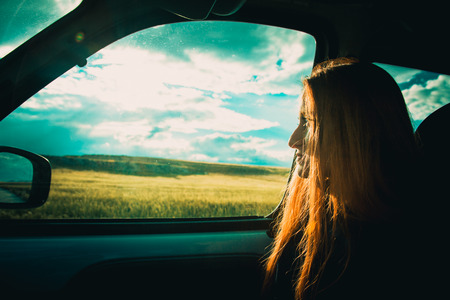 woman enjoying her trip going on vacation by car